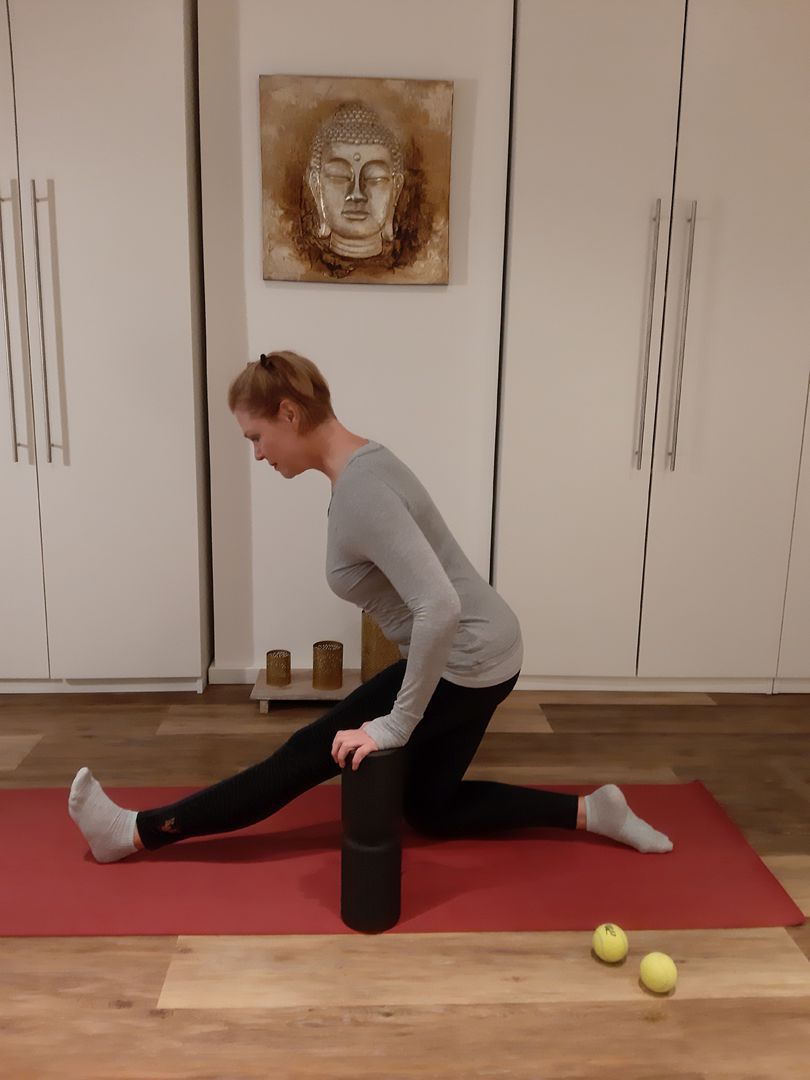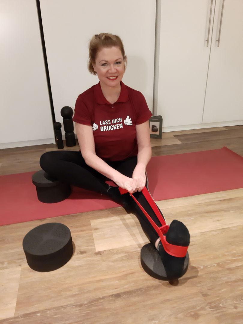 Engpassdehnungen, um die im Alltag oft eingeschränkten u. einseitig genutzten Bewegungswinkel der einzelnen Gelenke zu verbessern in Verbindung mit den Schmerzfreiformen, welche mit sanften Mobilisierungen, zusätzlich die Beweglichkeit verbessern sowie den Faszienrollmassagen, um verklebtes u. verfilztes Fasziengewebe zu lösen.